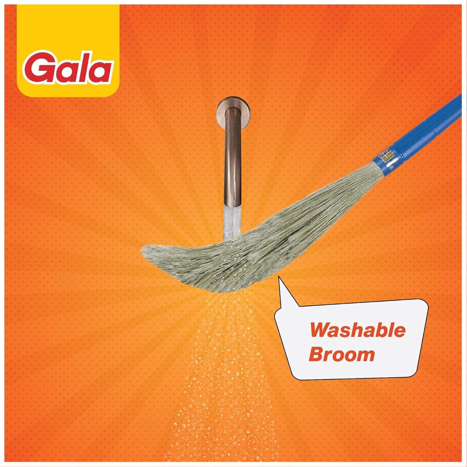 Built for durability and comfort, its firm-grip handle offers excellent mobility, allowing easy access under furniture. The synthetic bristles are specially designed to catch pet hair while providing a traditional yet modern cleaning experience. Lightweight and sturdy, it features a 90 cm handle and a wide, angled brush head for efficient sweeping. Includes: 1 Gala No Dust Floor Broom (Blue & Light Brown).