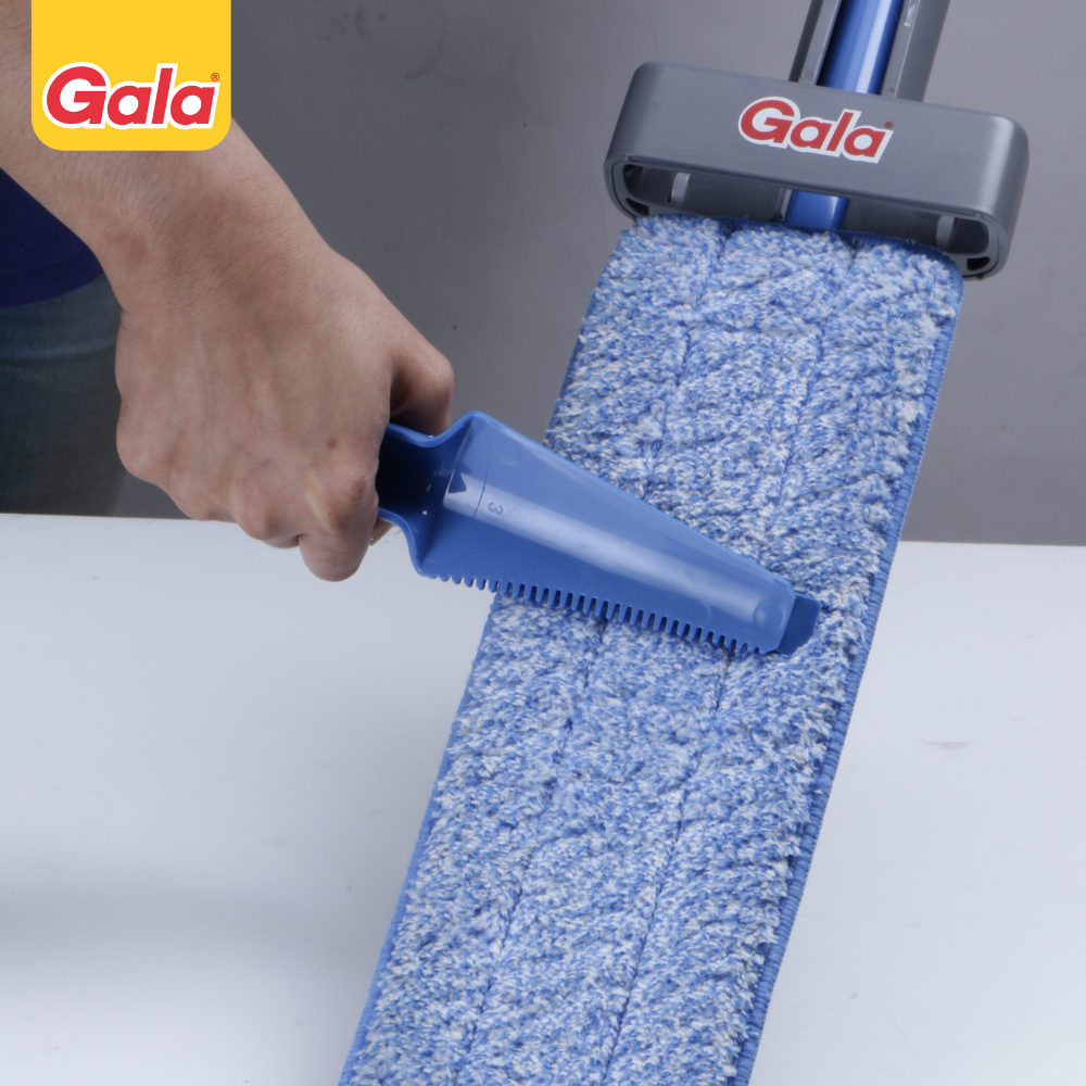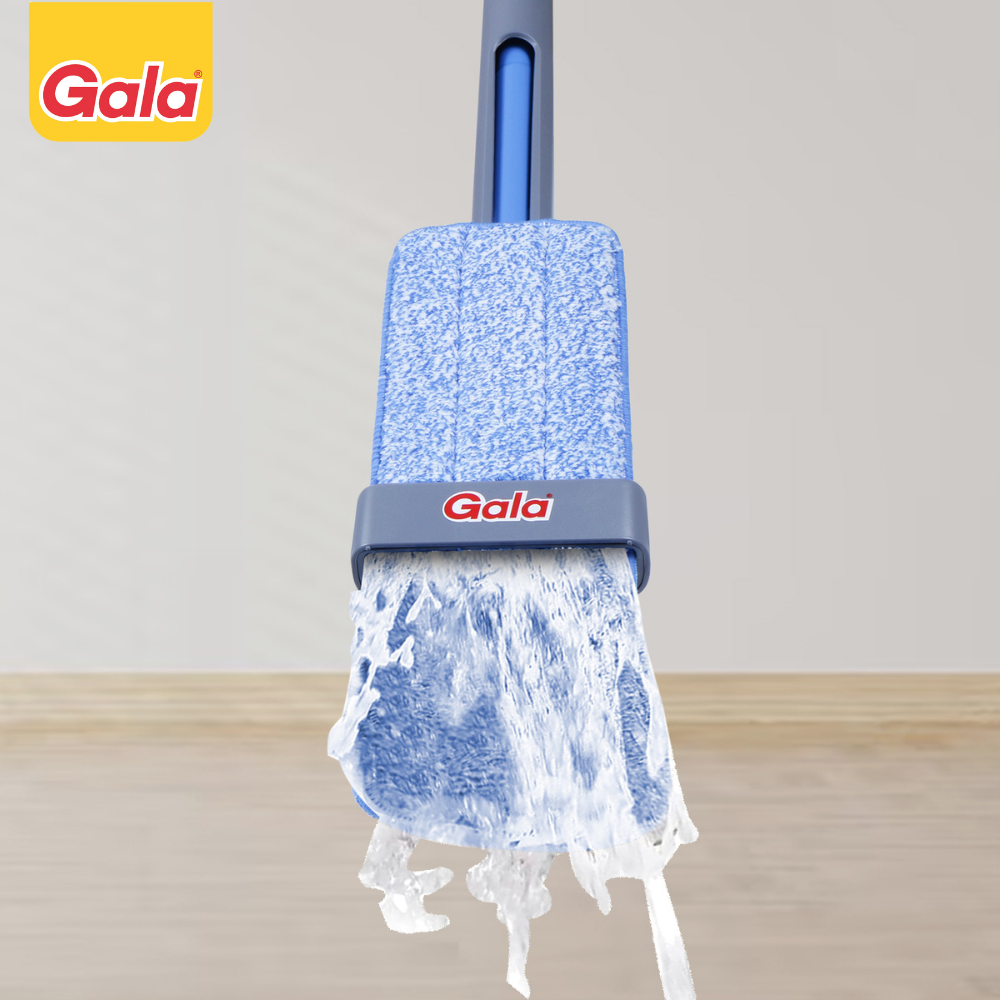 breaking cleaning and dirty hands. The new Gala QuickDry mop is designed to make home cleaning smart, sleek, and spotless. Featuring an innovative self-wringing mechanism, this mop allows you to squeeze out water without ever touching the wet pad. Whether it's tough coffee spills on the floor or fingerprints on glass windows, the high-quality microfiber pad ensures a streak-free shine every time. With a quick 3-step setup and a compact design, the Gala Mop is the modern solution for a sparkling clean home.